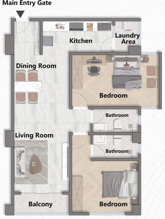 Diamond Mango’s 2-bedroom units deliver comfort, elegance, and convenience supported by high-end shared facilities, including: