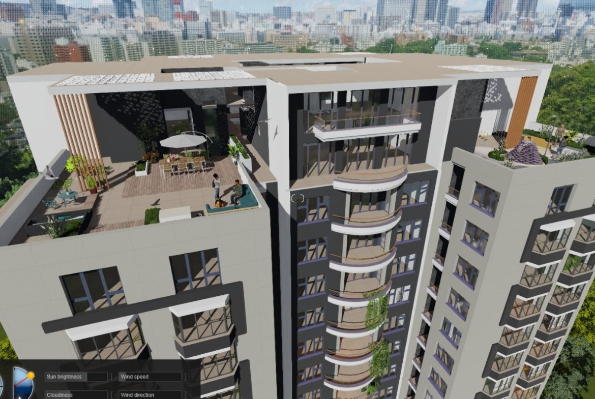 - Rooftop communal area with panoramic city views